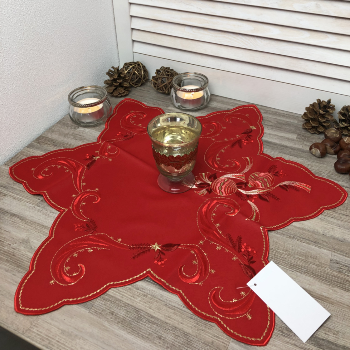 Roter Untergrund mit Gold bestickt, 56 cm groß